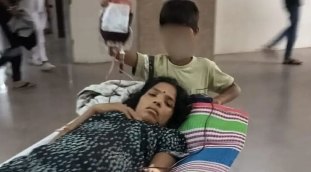 झाँसी: एक महिला की तबीयत नाजुक है. उसे स्ट्रैचर के ज़रिए अस्पताल में एक जगह से दूसरी जगह ले जाया जा रहा है. लेकिन इस स्ट्रैचर को अस्पताल कर्मी नहीं, बल्कि उसका पति धक्का दे रहा है. महिला को ख़ून चढ़ाया जा रहा है. और इस बोतल को हाथ में लिए उसका 9 साल बेटा स्ट्रैचर के पीछे-पीछे चल रहा है.