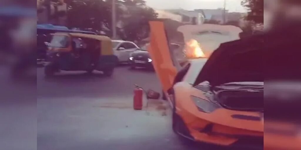 स्पोर्ट्स कार के सामने आए वीडियो में गाड़ी के पिछले हिस्से से आग की लपटें उठती दिखाई दे रही हैं. साथ ही कुछ लोग कार में लगी आग को बुझाने के लिए उस पर पानी डालते दिखाई देते हैं. लेम्बोर्गिनी के पिछले हिस्से में इसका इंजन होता है.