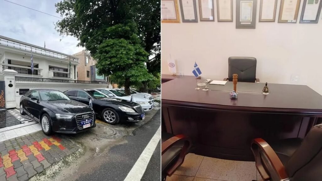 किराए के मकान में चलने वाले इस फर्जी दूतावास से 44 लाख 70 हजार कैश बरामद हुए है। खास बात ये है कि चार अलग-अलग देशों के दूतावास एक ही घर पर बने थे। आसपास के लोग भी इस घर से बाहर से गुजरते समय शांति से निकलते थे लेकिन जब यूपी STF की नोएडा यूनिट ने छापा मारा तो पूरा राज खुल गया। इस फर्जी दूतावास से दूसरे देशों में जाने के लिए लोगों को वीजा तक मुहैया कराया जा रहा है।