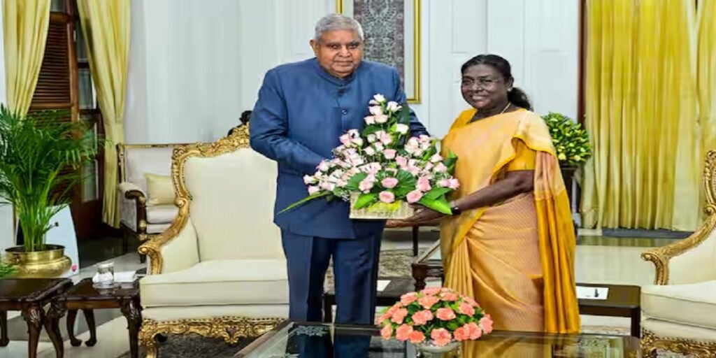 नई दिल्ली: राष्ट्रपति द्रौपदी मुर्मू ने मंगलवार को उपराष्ट्रपति जगदीप धनखड़ का इस्तीफा स्वीकार कर लिया। धनखड़ ने सोमवार शाम को स्वास्थ्य कारणों का हवाला देते हुए अपने पद से इस्तीफा दे दिया था। जगदीप धनखड़ ने राष्ट्रपति द्रौपदी मुर्मू को लिखे अपने इस्तीफा पत्र में कहा था, ‘मैं अपनी सेहत को प्राथमिकता देने और डॉक्टरों की सलाह मानने के लिए तुरंत प्रभाव से भारत के उपराष्ट्रपति के पद से इस्तीफा दे रहा हूं।’ उन्होंने अपने पत्र में संविधान के अनुच्छेद 67(ए) का हवाला दिया।